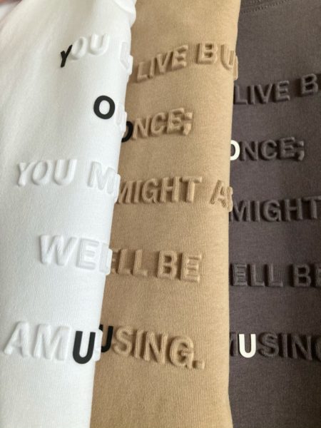 今日はその新作Tシャツの中からコチラ↓を紹介したいと思います♪『強撚コットンエンボスプリントTシャツ』