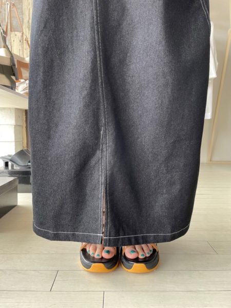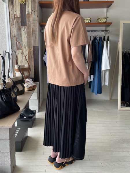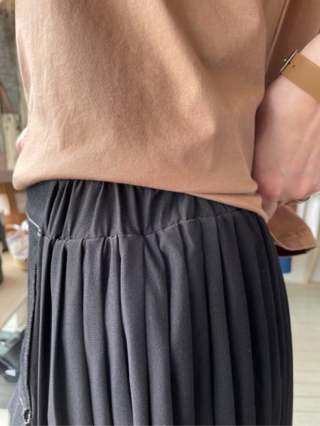 バックはプリーツになっているのでフロントとの切り替えも楽しめます。 オールシーズン使えてデニム地なのに柔らかい履き心地のスカートですよ!
