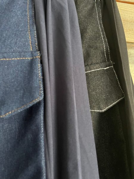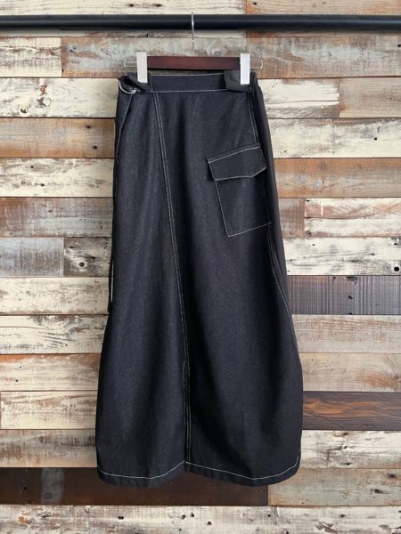 サイズ:着丈87cm/ウエスト64cm〜(バックゴム仕様)ヒップ110cmデニム地とプリーツがドッキングされたスカートが2色展開で入荷致しました!
