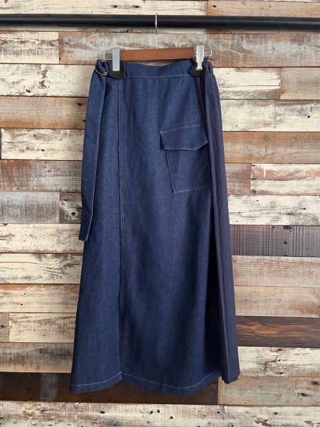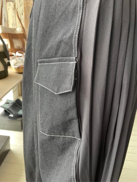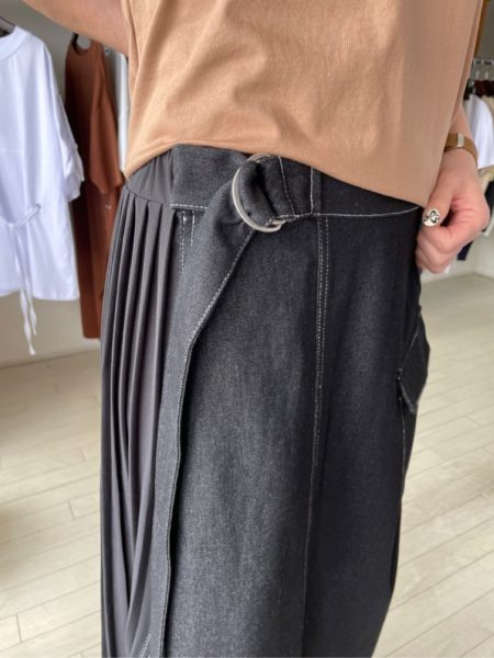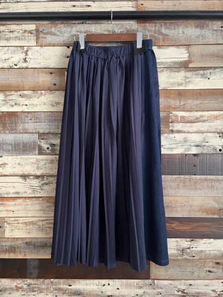 今日は、コチラ↓のスカートをご紹介致します。★『プリーツドッキングデニムスカート』