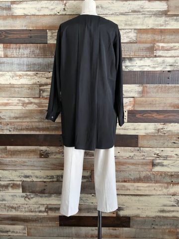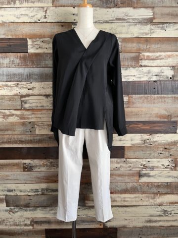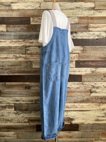 アシンメトリーデザインになり、両サイド着丈が違うので左右の雰囲気が変わりますね。◇『麻混デニムオーバーオール』L.Indigoのインナーにしても↓