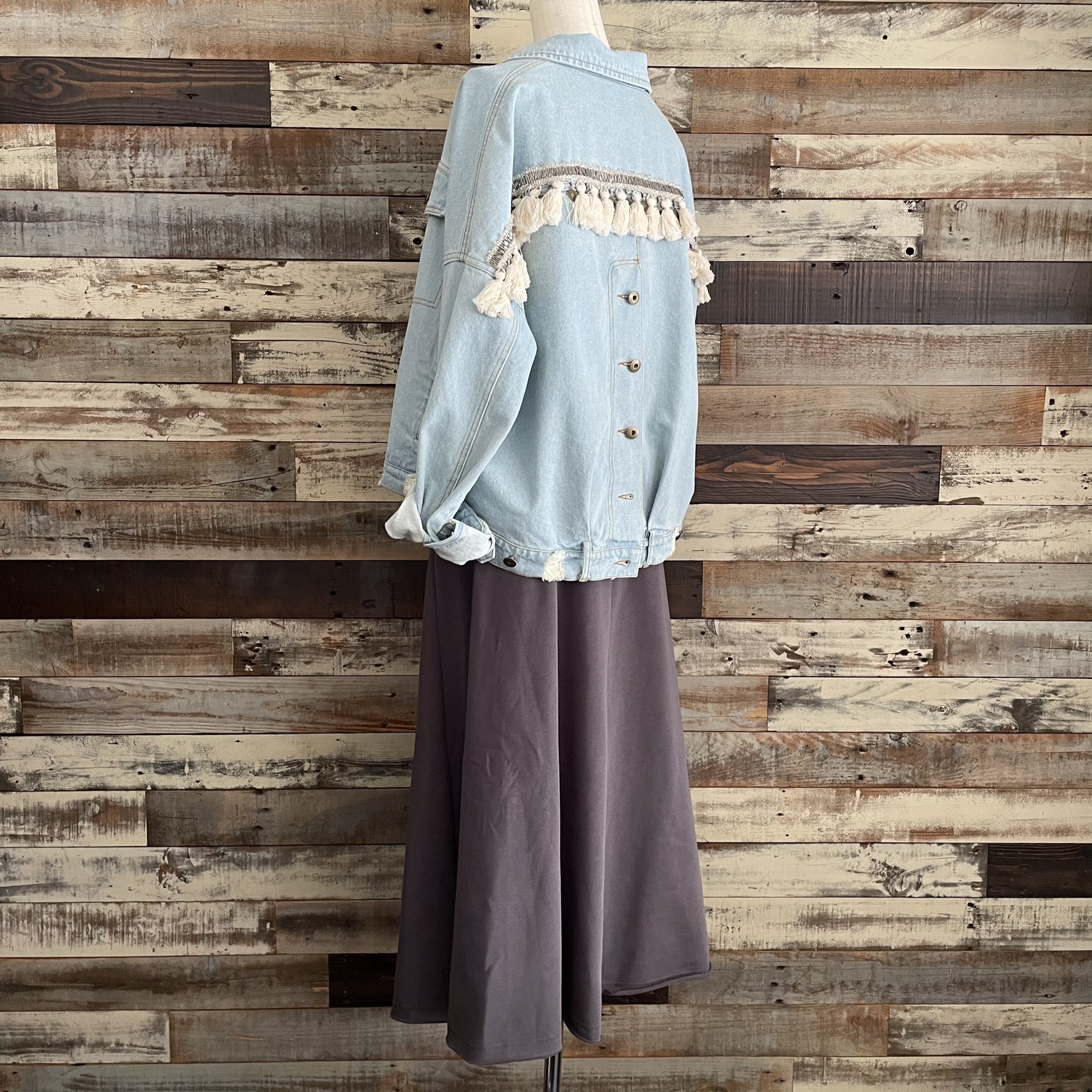 『コインフリンジデニムジャケット』税込¥17,600夏などはTシャツに合わせてシンプルだけどかわいい大人カジュアルなコーディネートに↓
