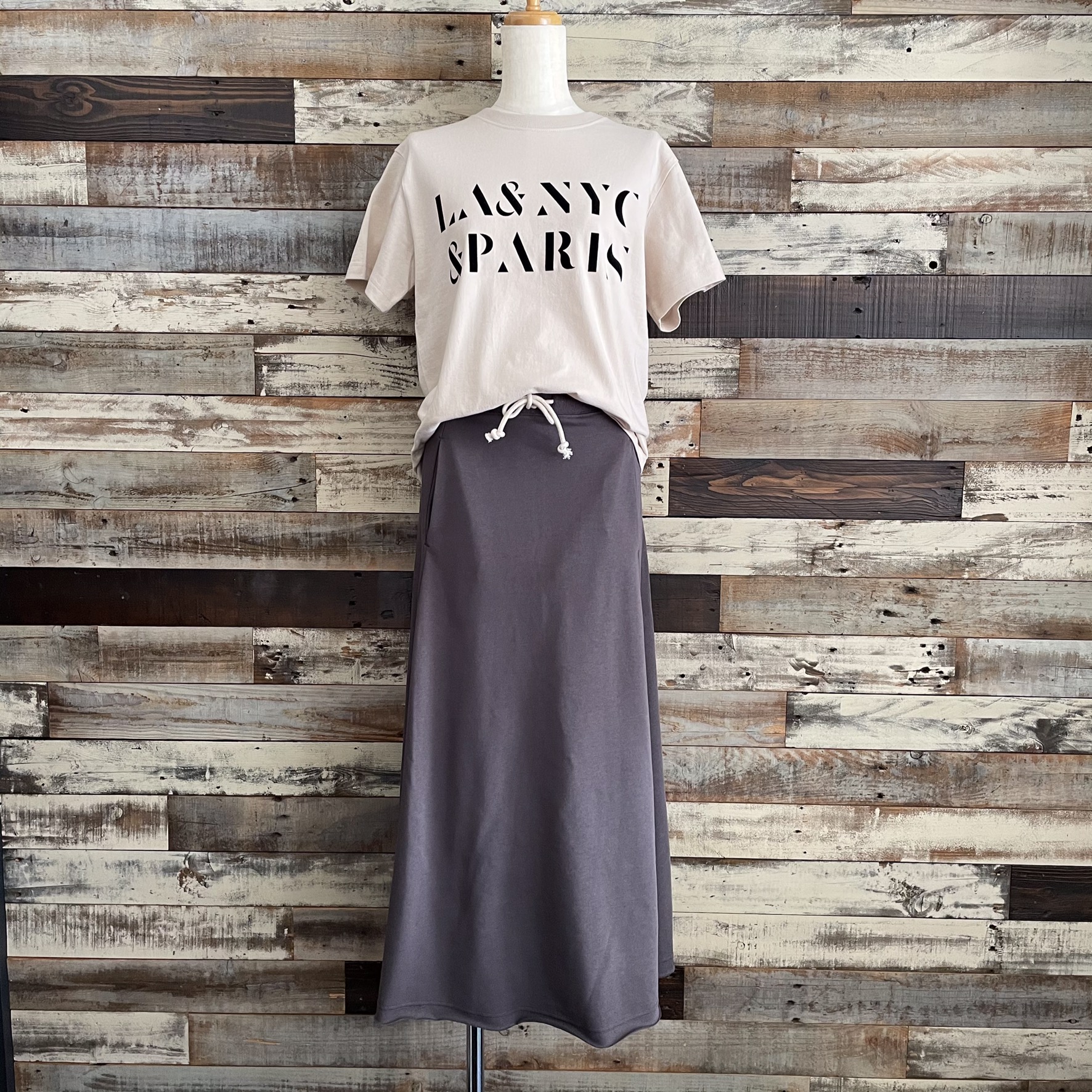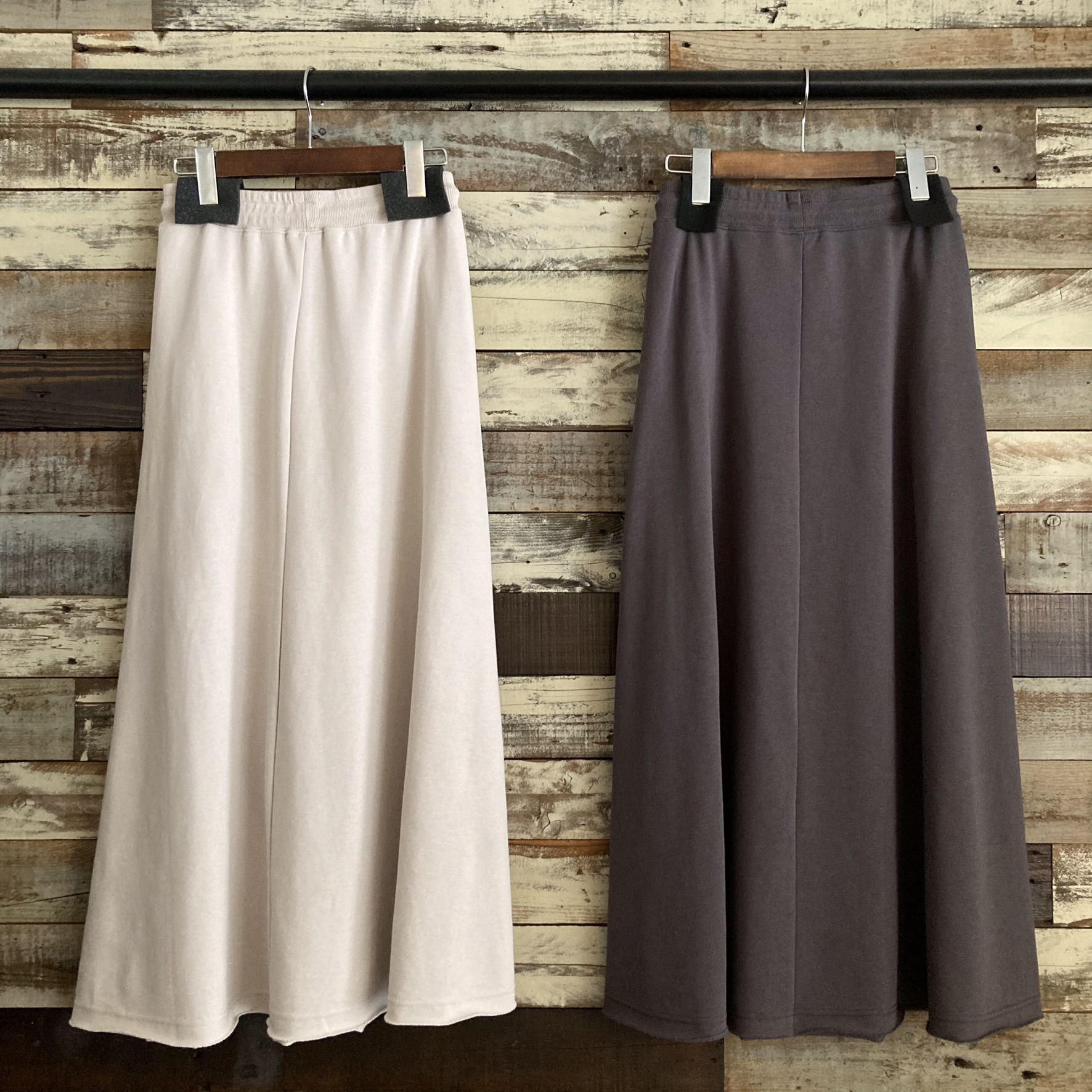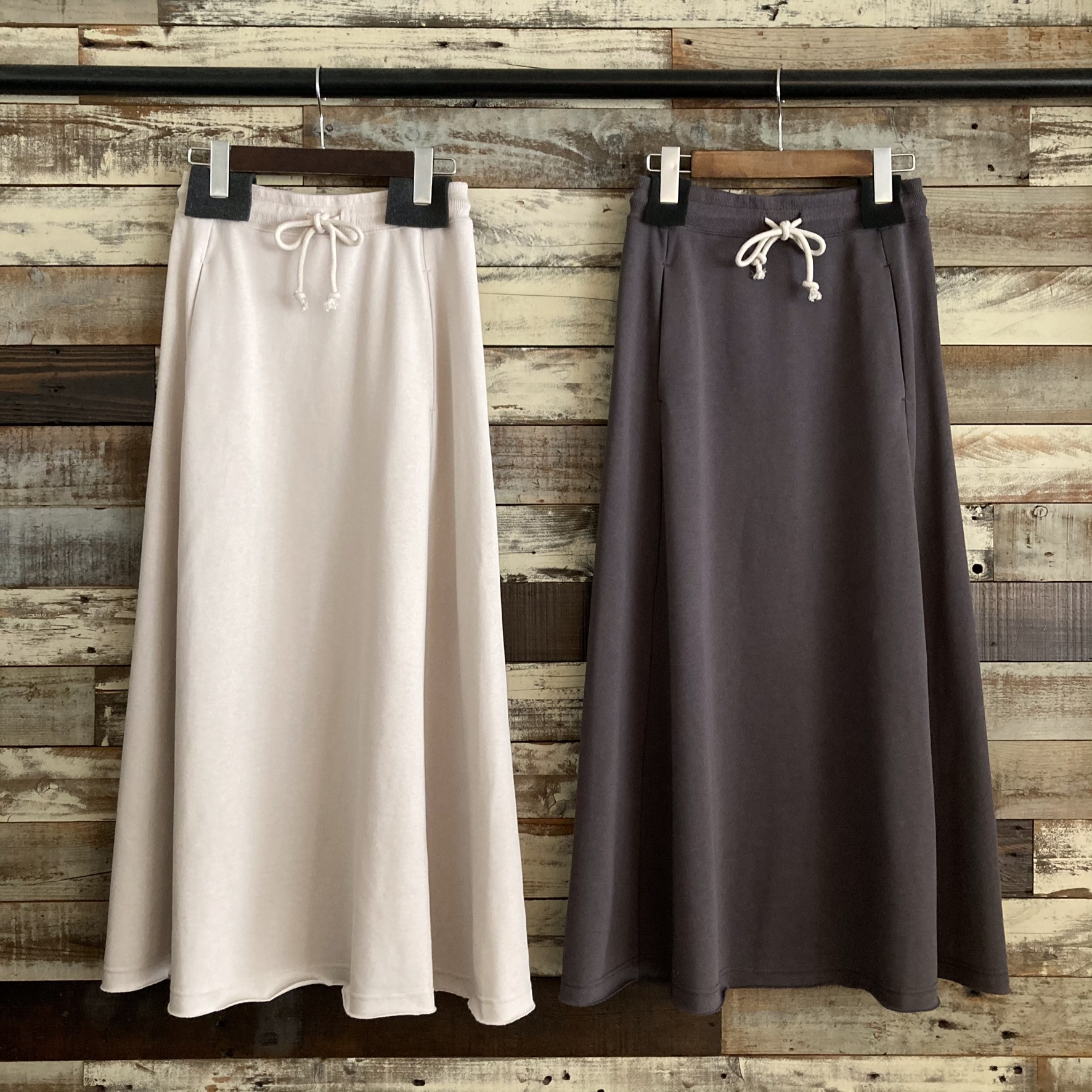 L.Beige/ Charcoal grayこれからの季節にぴったりな肉厚すぎない程よい薄さの裏毛スカートが2色展開で入荷致しました!